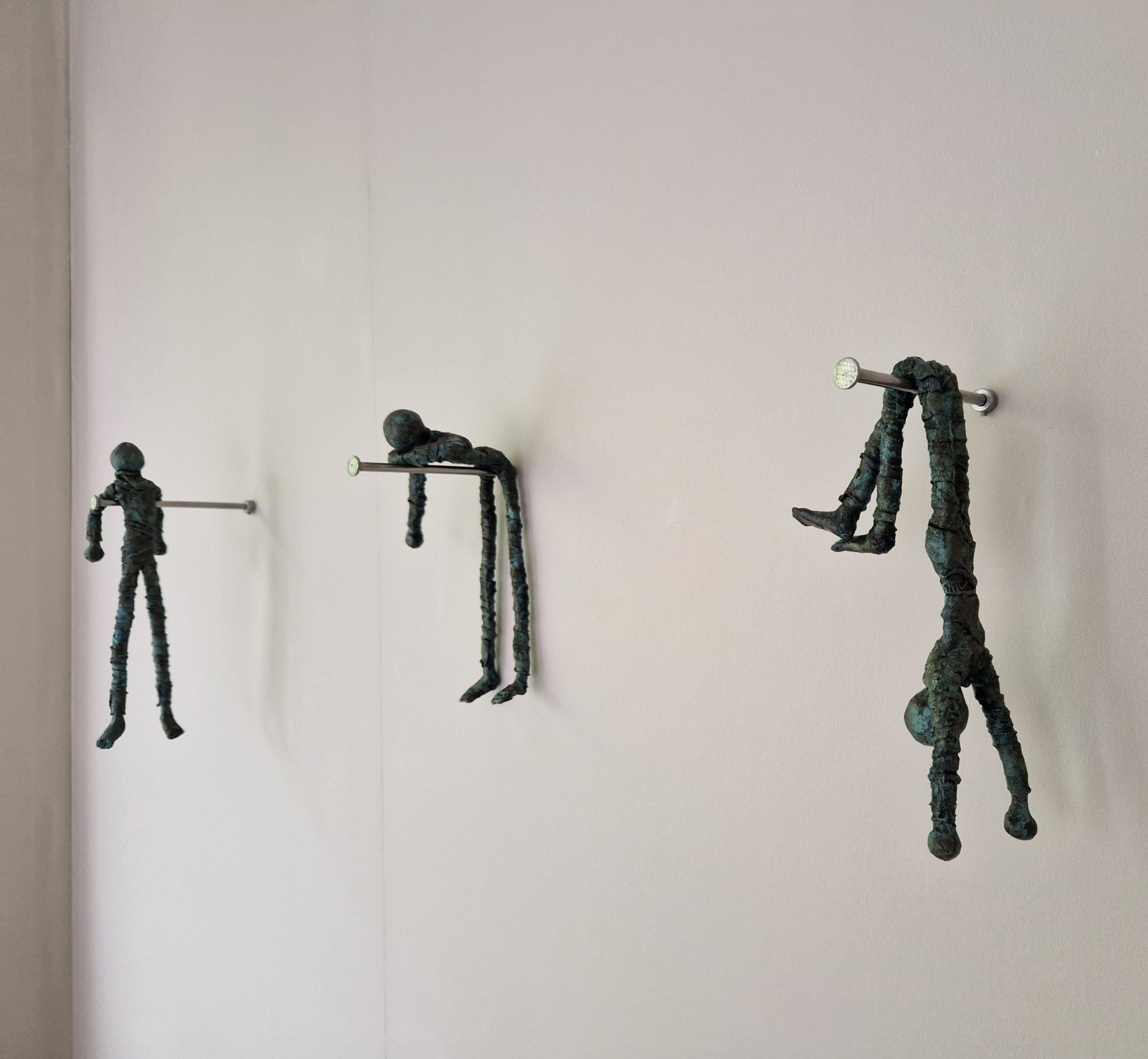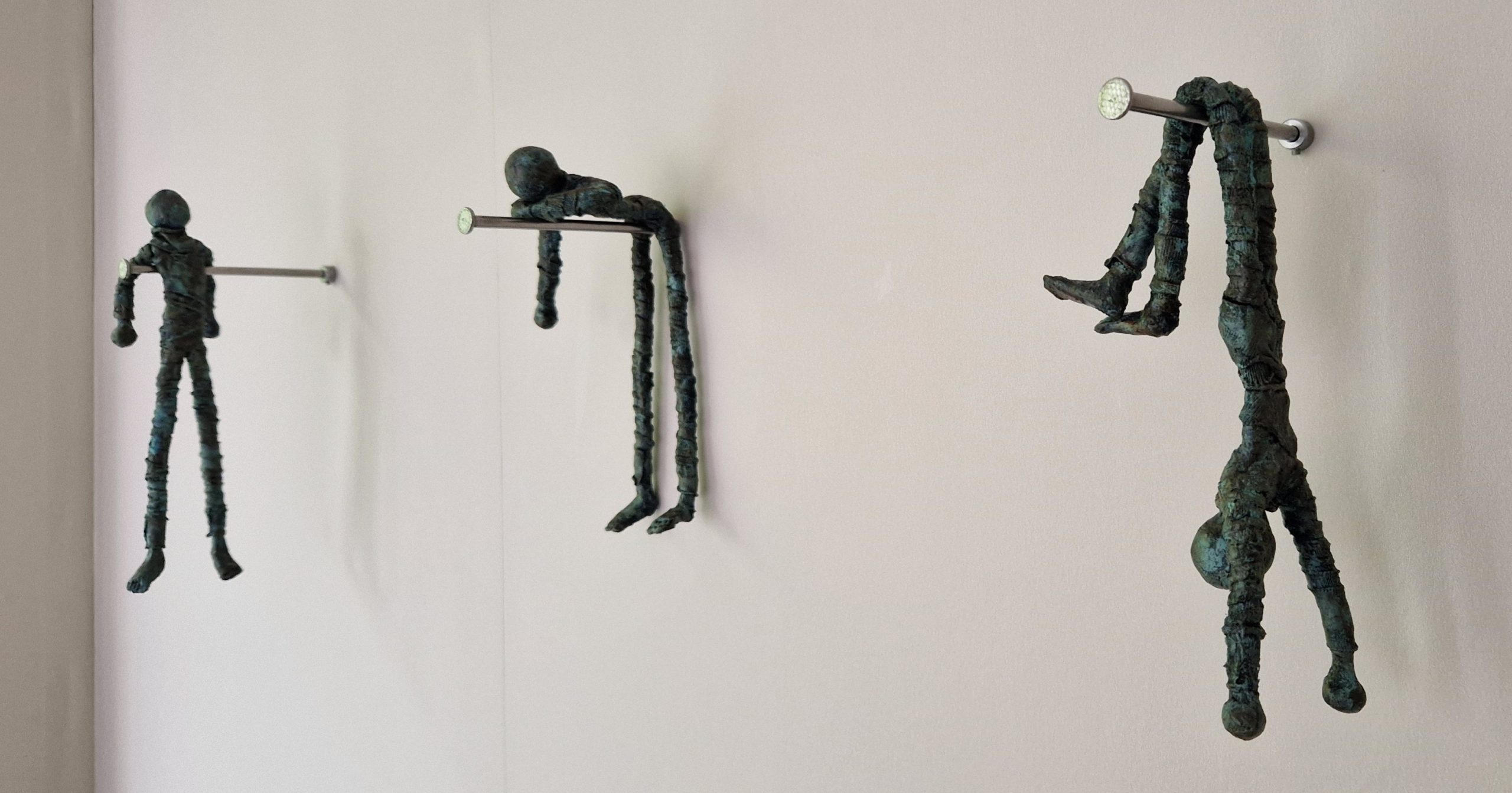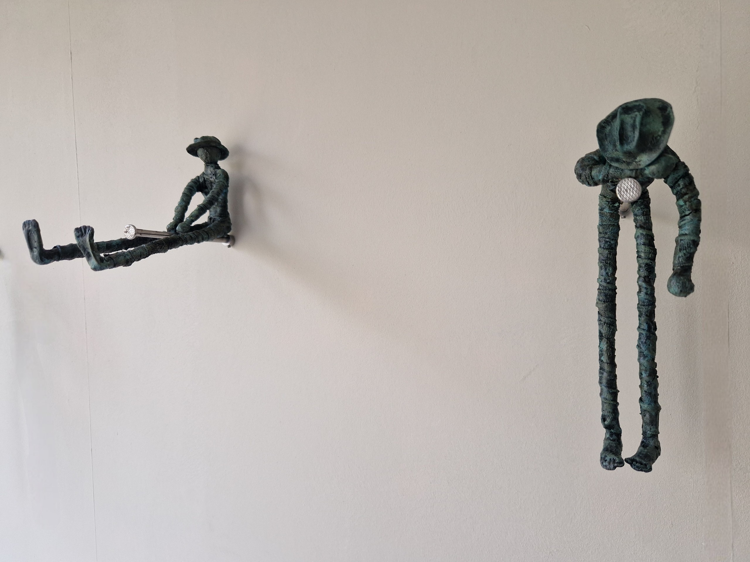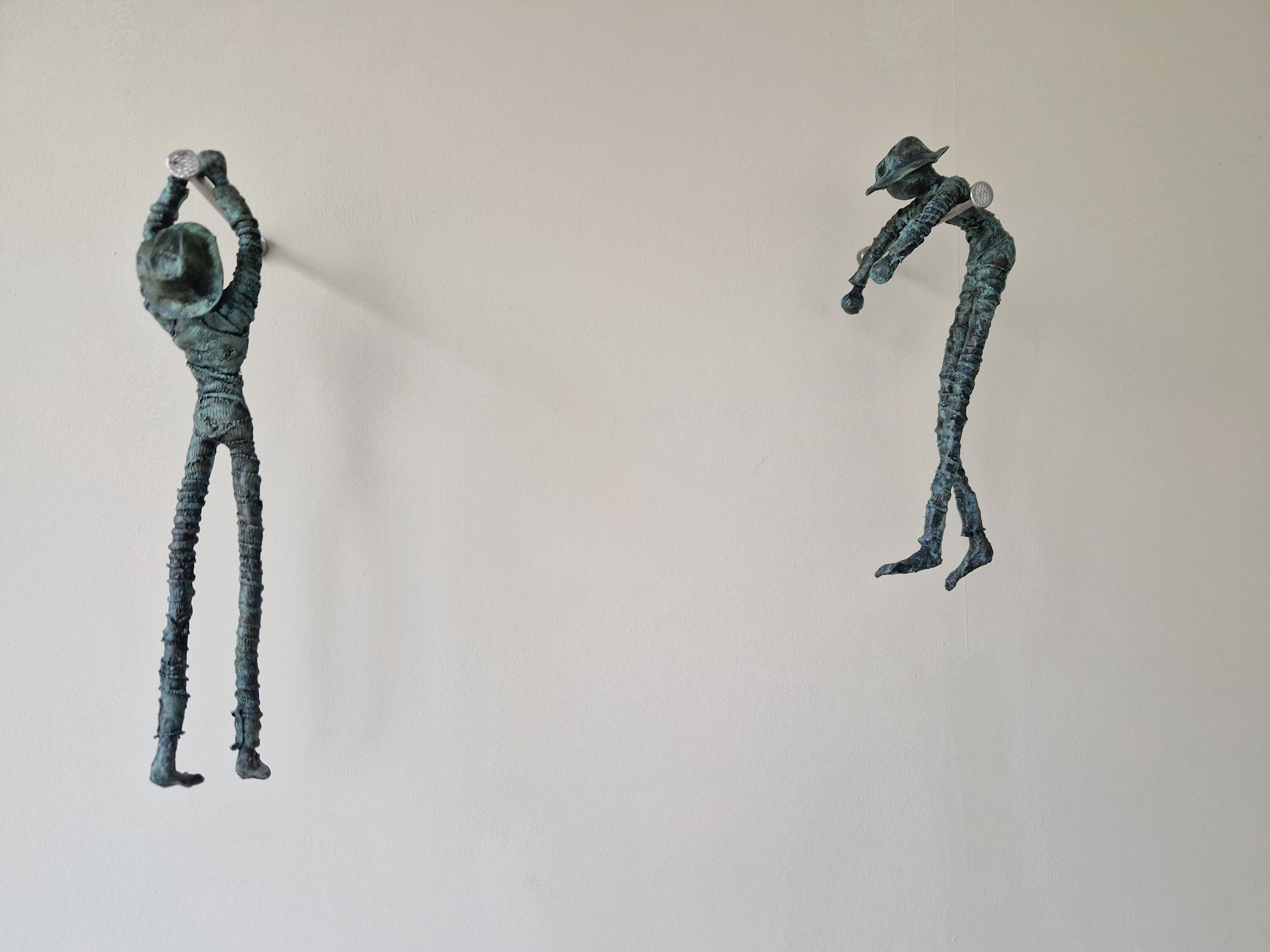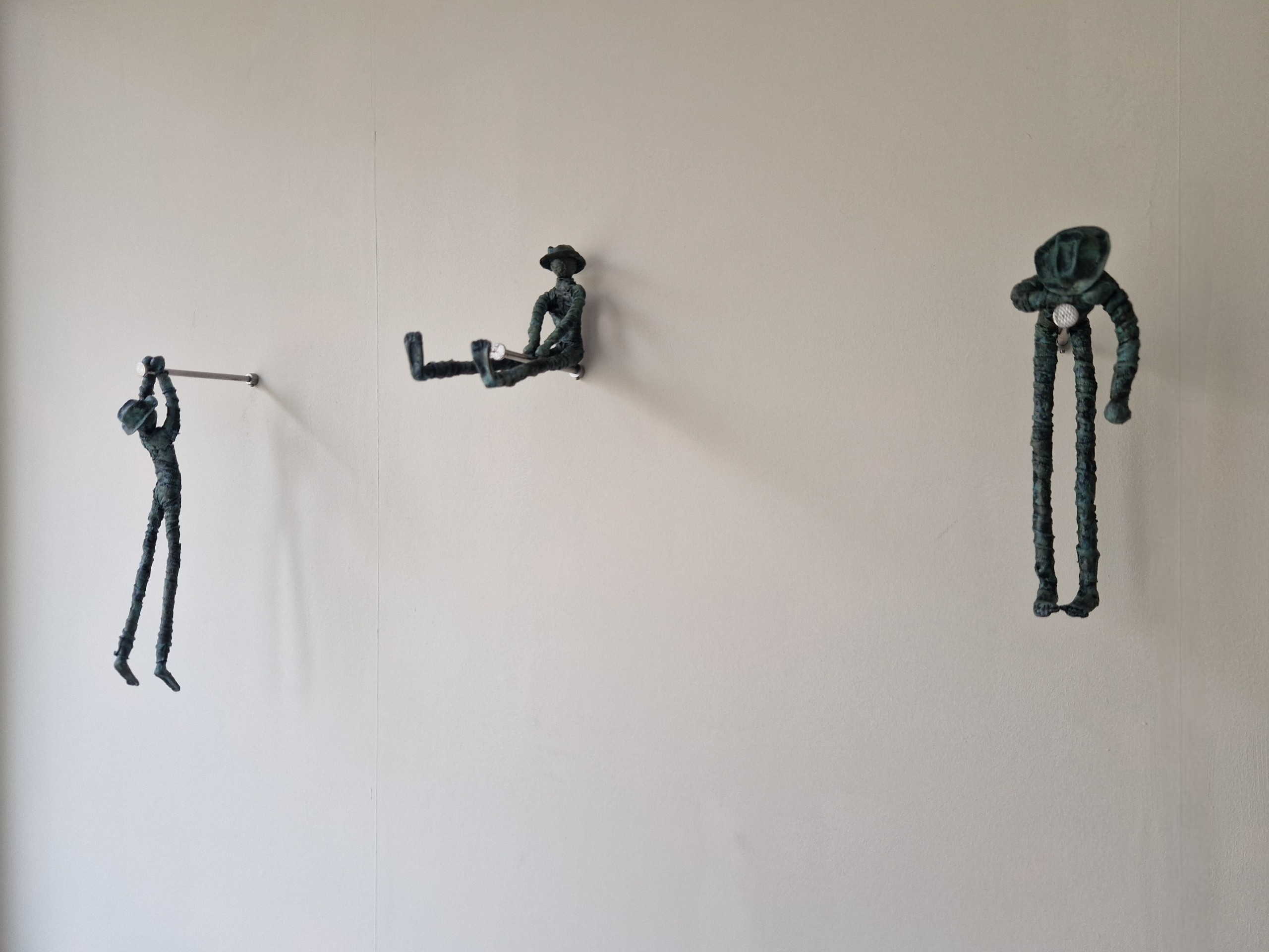 Hanging Around De Hanging Around figuren zijn gemaakt van stone-art, powertex (een textielverharder) en draadnagels. Een set bestaat uit 3 figuren, inclusief draadnagels en bevestigingsmateriaal.
