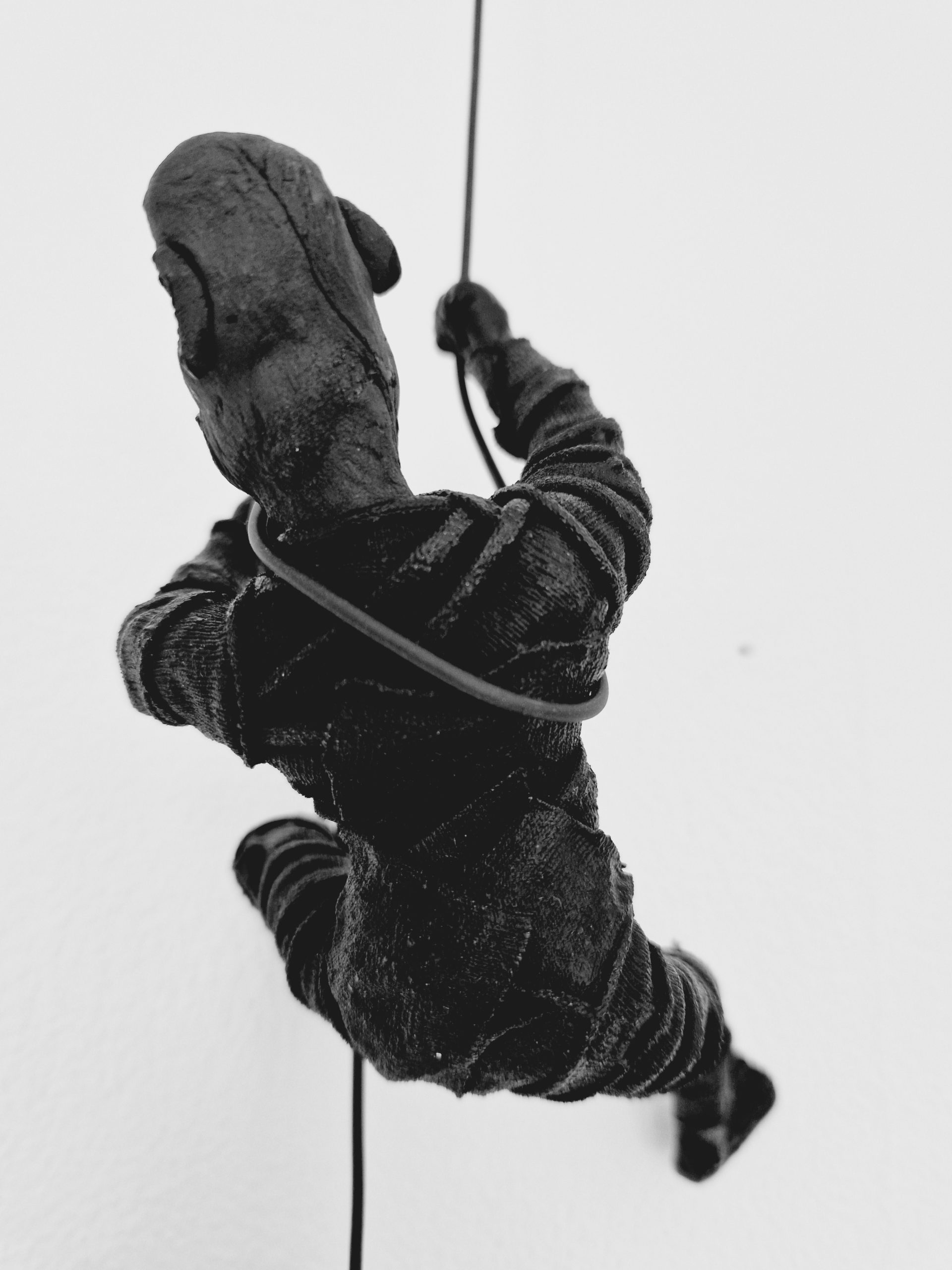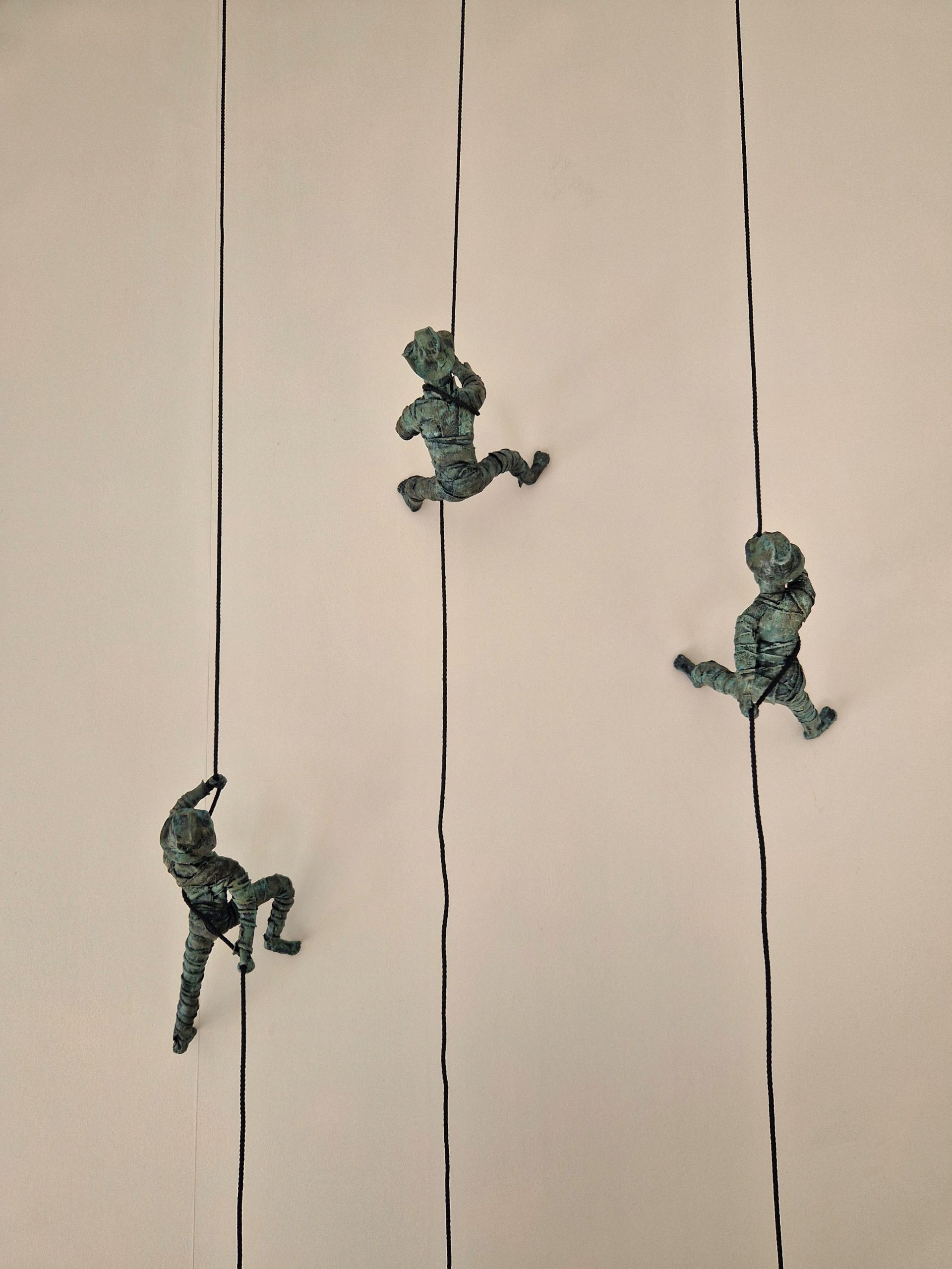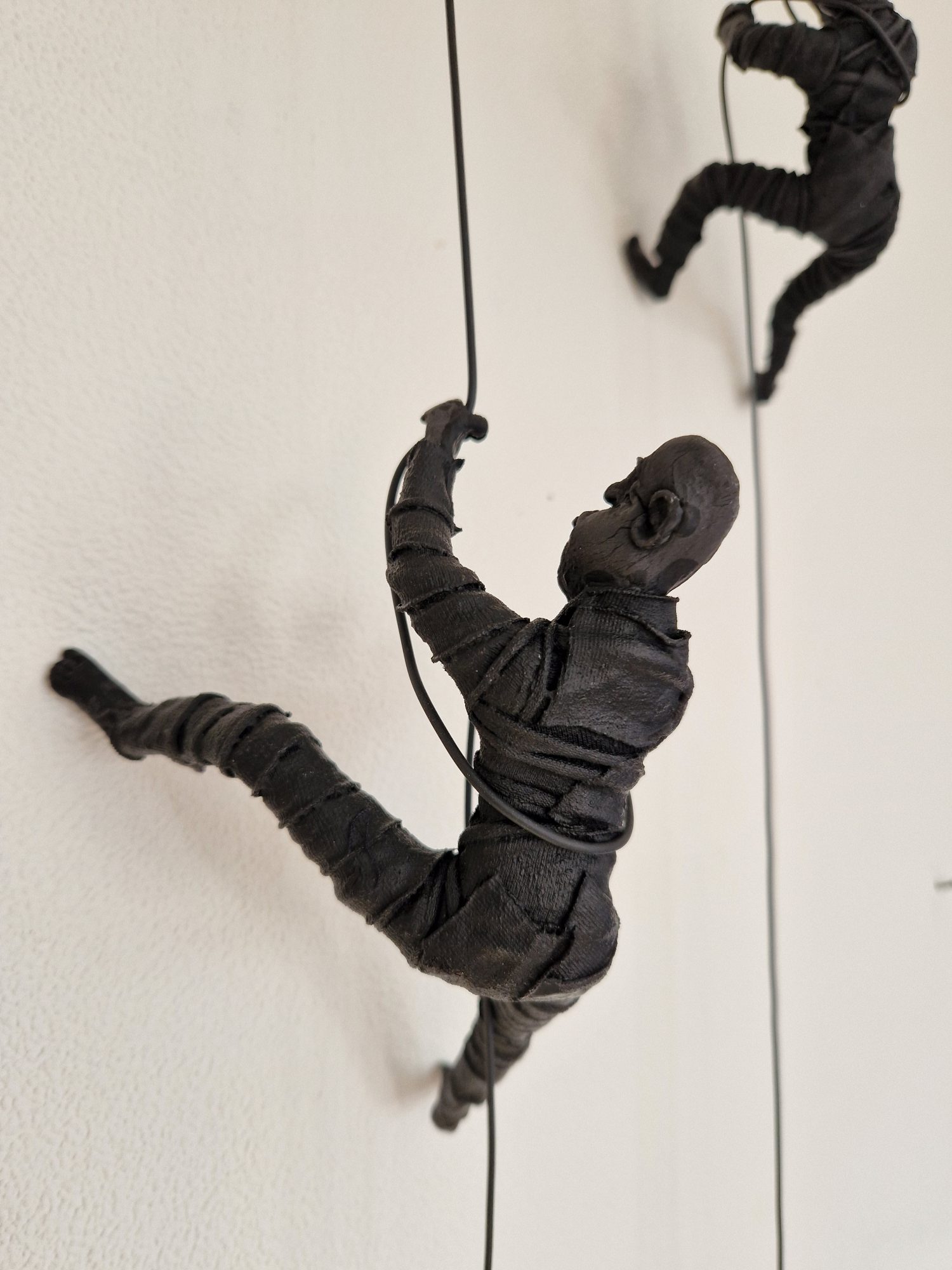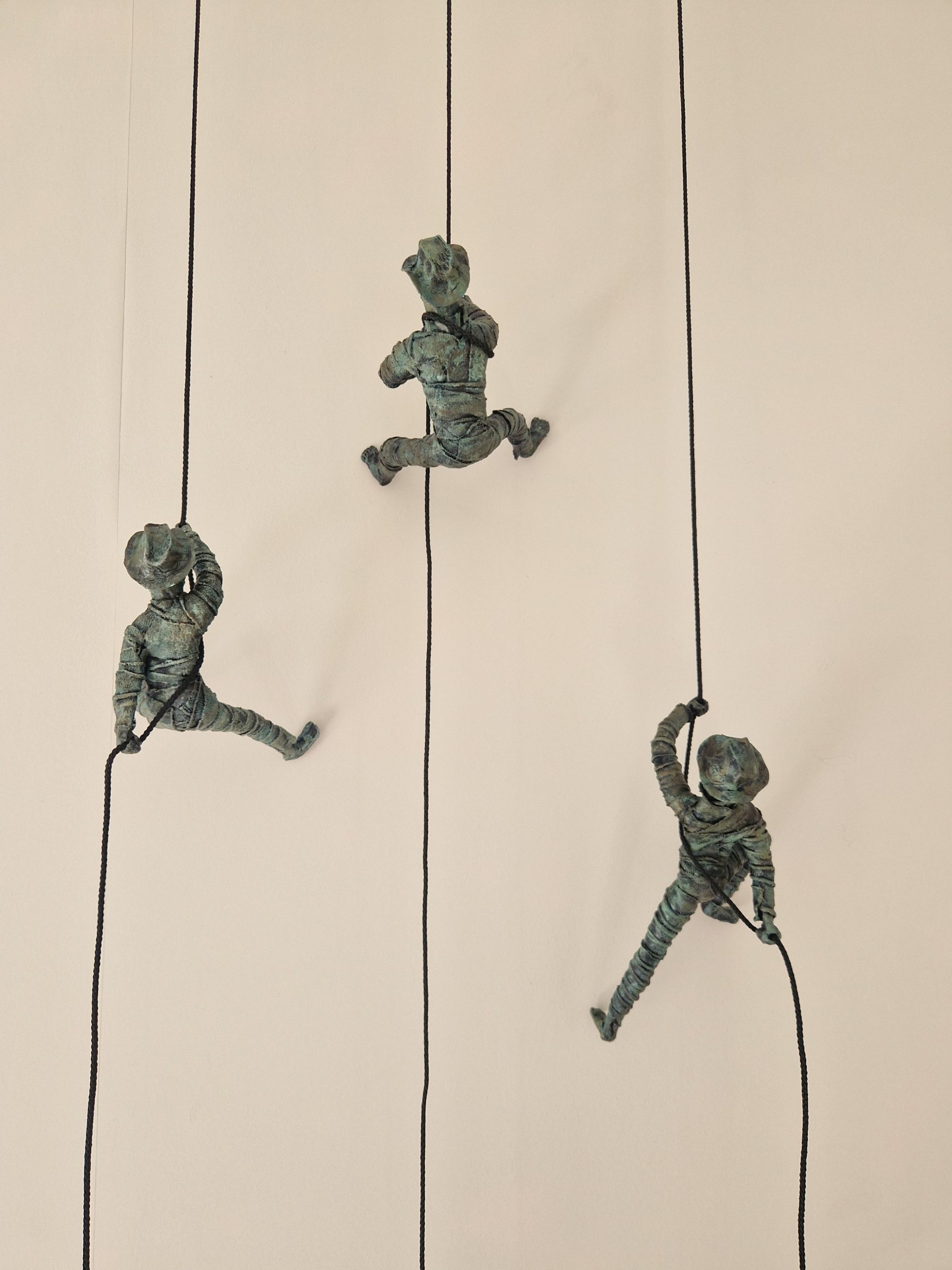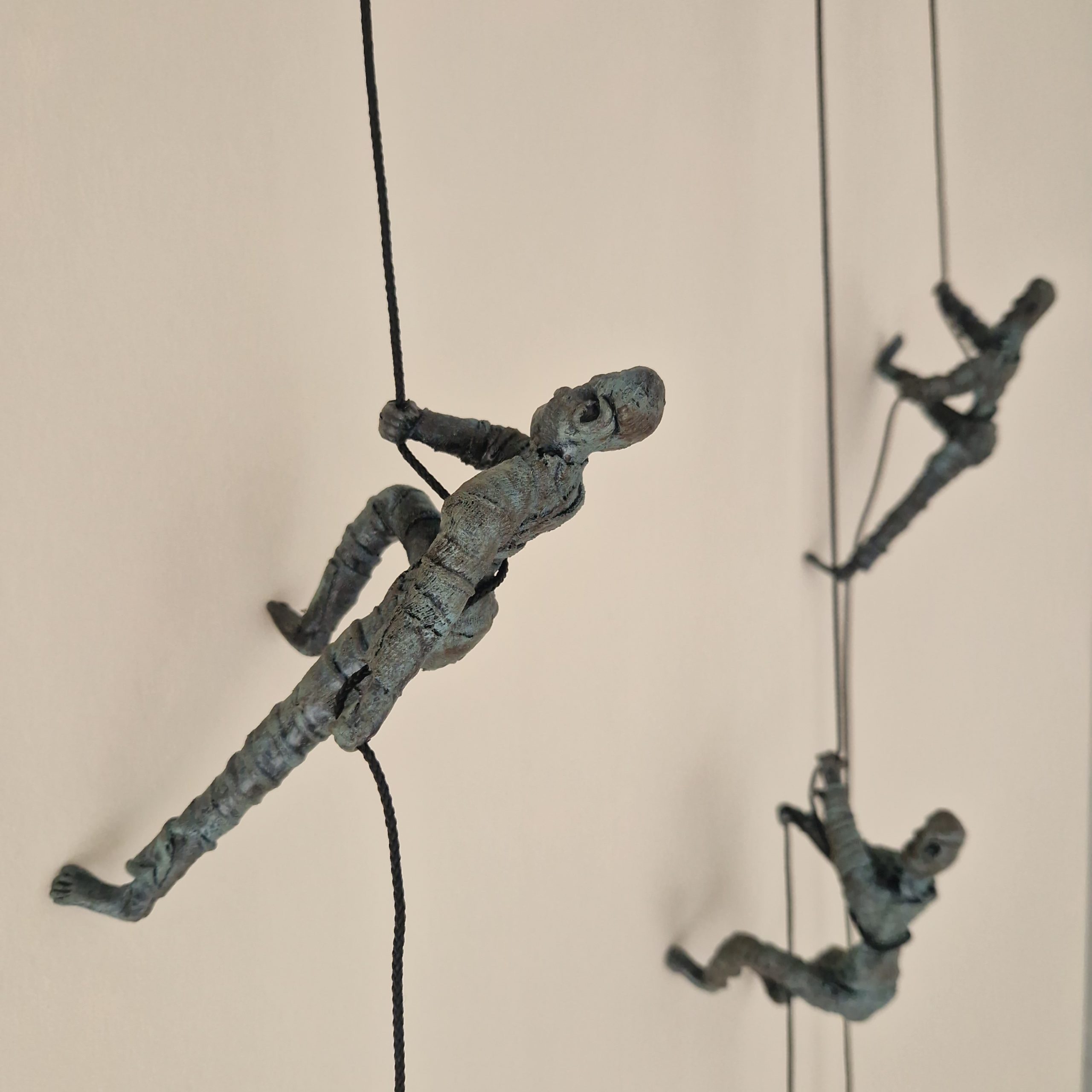 Hanging On De Hanging On figuren zijn gemaakt van stone-art, powertex (een textielverharder) en koord. Elke set bestaat uit 3 figuren inclusief koord en bevestigingsmateriaal.De figuren zijn beschikbaar in bronskleur en zwart.